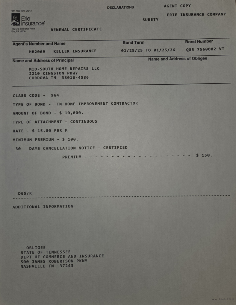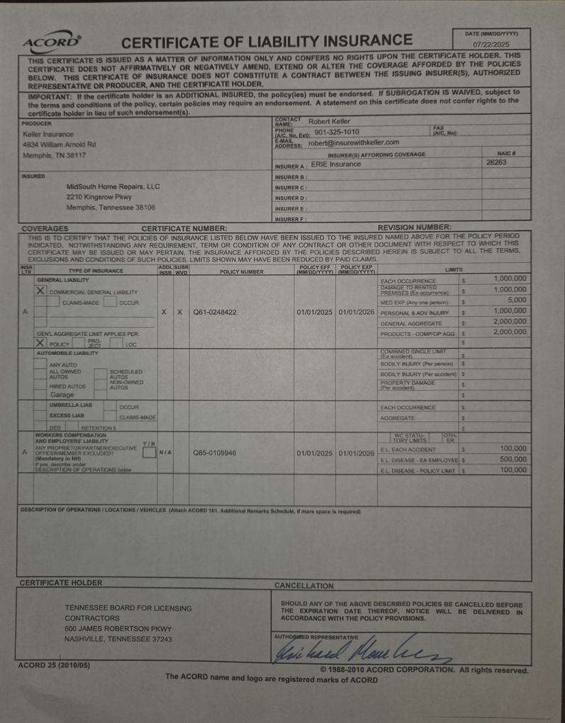 Have you hired or worked with Mid-South Home Repairs? Please let us know your experience.