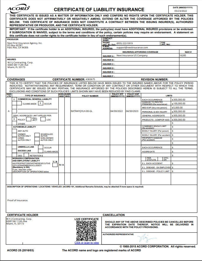 Have you hired or worked with WYJ CONTRACTING, CORP.? Leave your Review