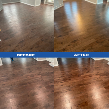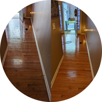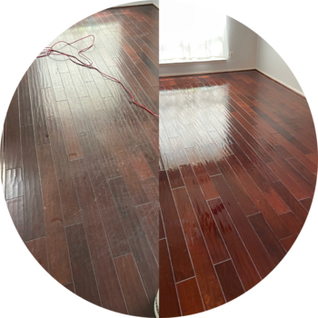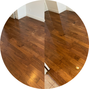 Our Restoration Hardwood Floor Cleaning package offers a comprehensive solution for hardwood floors requiring extensive cleaning. This service incorporates all the features of the Standard package and introduces additional treatments for optimal results. We intensify the cleaning process with an alkaline floor scrubbing using a 175 RPM buffer and appropriate pad, removing deeply embedded soil, worn poly, or wax as needed. This may include up to two extra passes with the machine for maximum soil and stain removal. A coating of polyurethane is highly recommended after this cleaning process to maintain the cleanliness and shine of your floor, and you'll receive a 10% discount on any coating add-on with this package. The Restoration service is also backed by a 30-Day Satisfaction Guarantee.