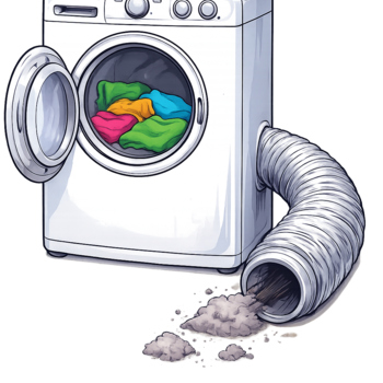 Thoroughly brush and or vac clothes dryer air duct, lint trap, exterior flap/cover, and flow check. Extra ordinary debris, stackable units, difficult to access or steep pitched roofs, or vent lengths beyond 10' may be additional cost.